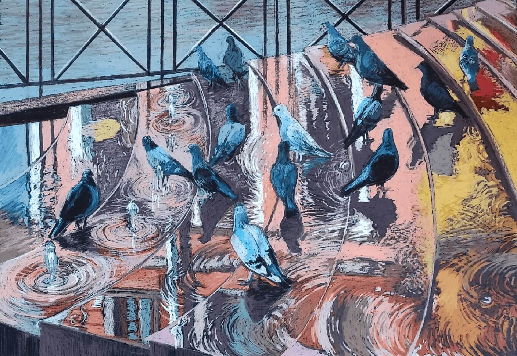 Голуби в фонтане. Санкт-Петербург