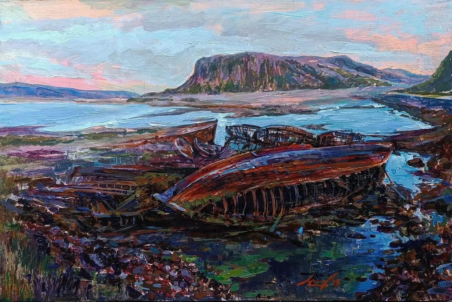 Корабли в Териберке. Полярный день у Баренцева моря