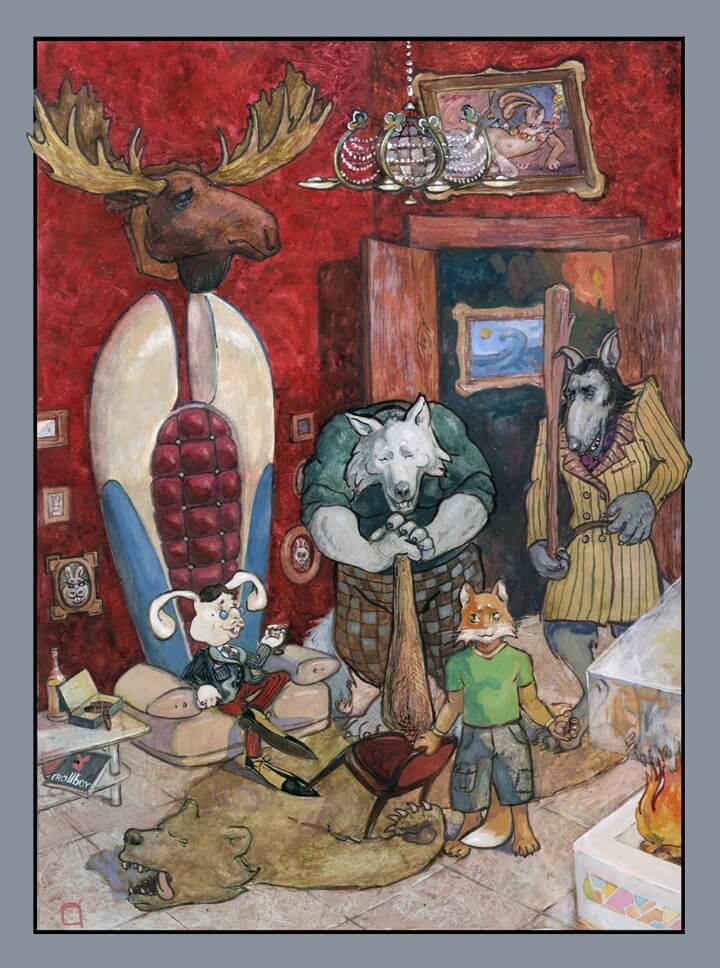 Полосная иллюстрация к роману Фреда Адры "Лис Улисс". Кот Костантин у Кроликконе