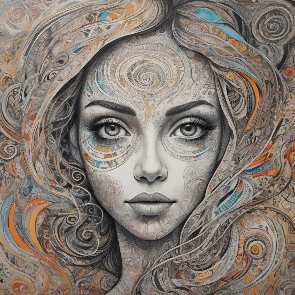 В центре внимания находится абстрактная композиция, которая словно погружает зрителя в вихрь эмоций и мыслей. Мазки кисти играют с цветом и текстурой, создавая ощущение движения и динамики. Живопись эффектно контрастирует с фоном, будто бы воссоздавая борьбу между хаосом и порядком.